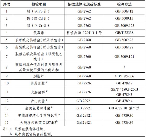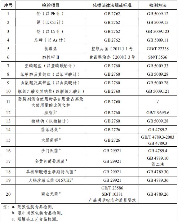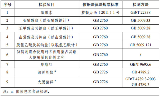 熟肉制品抽檢項目: